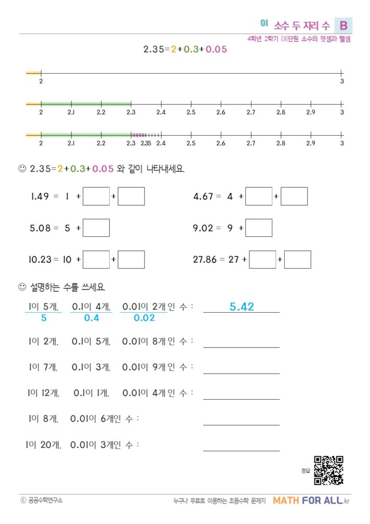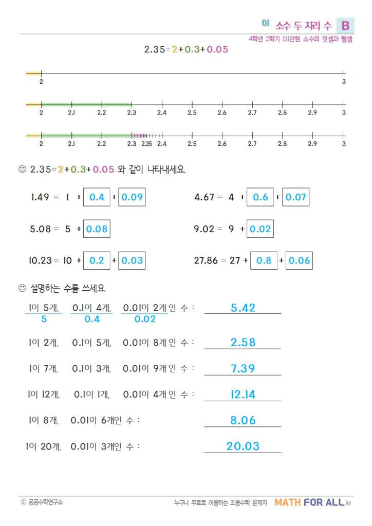 4학년 2학기 3단원 소수의 덧셈과 뺄셈