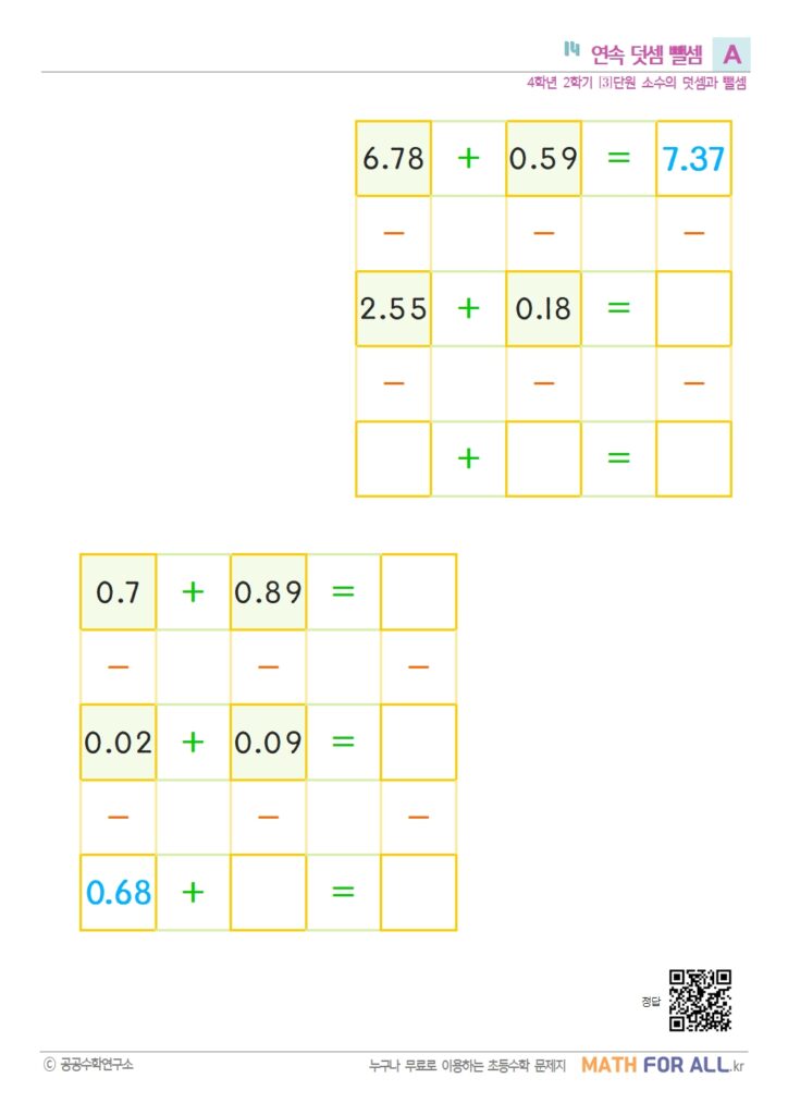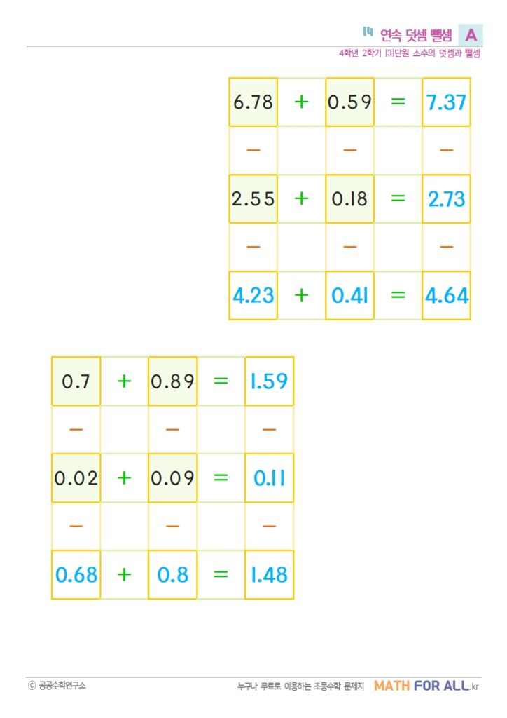 4학년 2학기 3단원 소수의 덧셈과 뺄셈