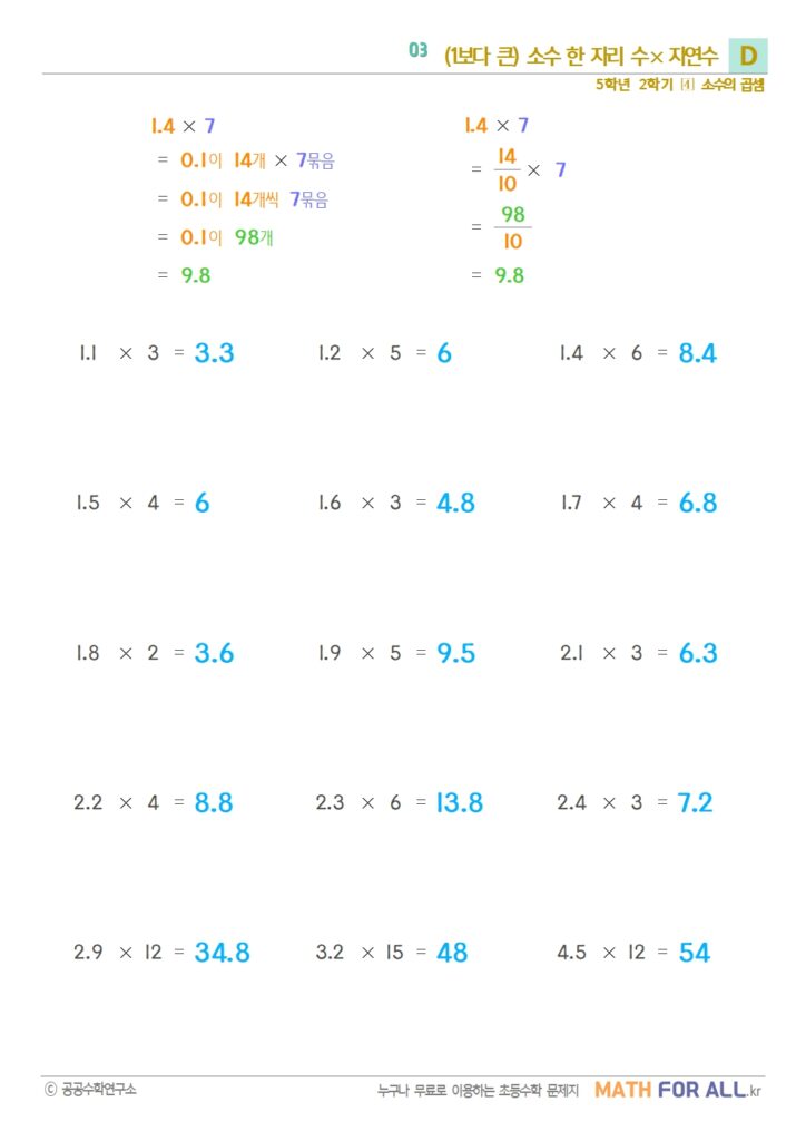 03 (1보다 큰) 소수 한 자리 수 × 자연수 D