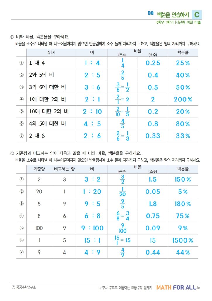 08 백분율 연습하기 C