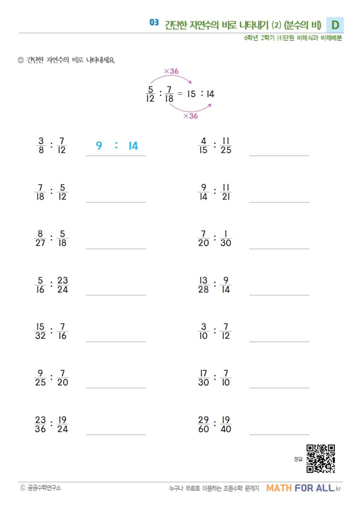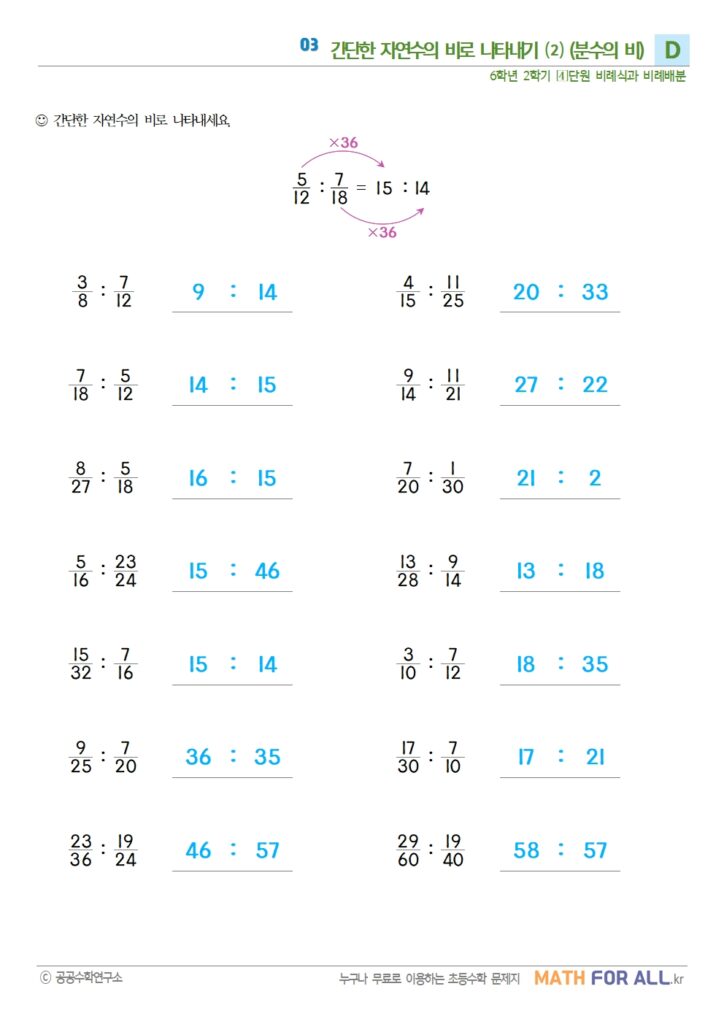03 간단한 자연수의 비로 나타내기 ⑵ (분수의 비) D