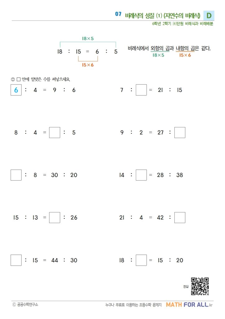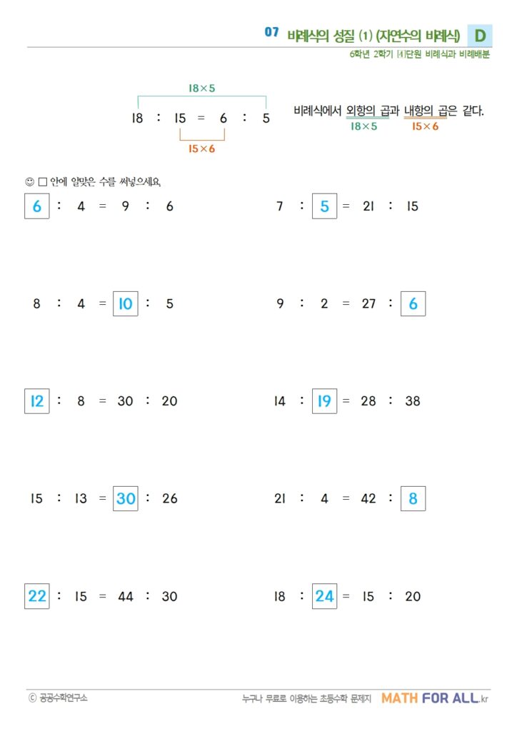 07 비례식의 성질 ⑴ (자연수의 비례식) D
